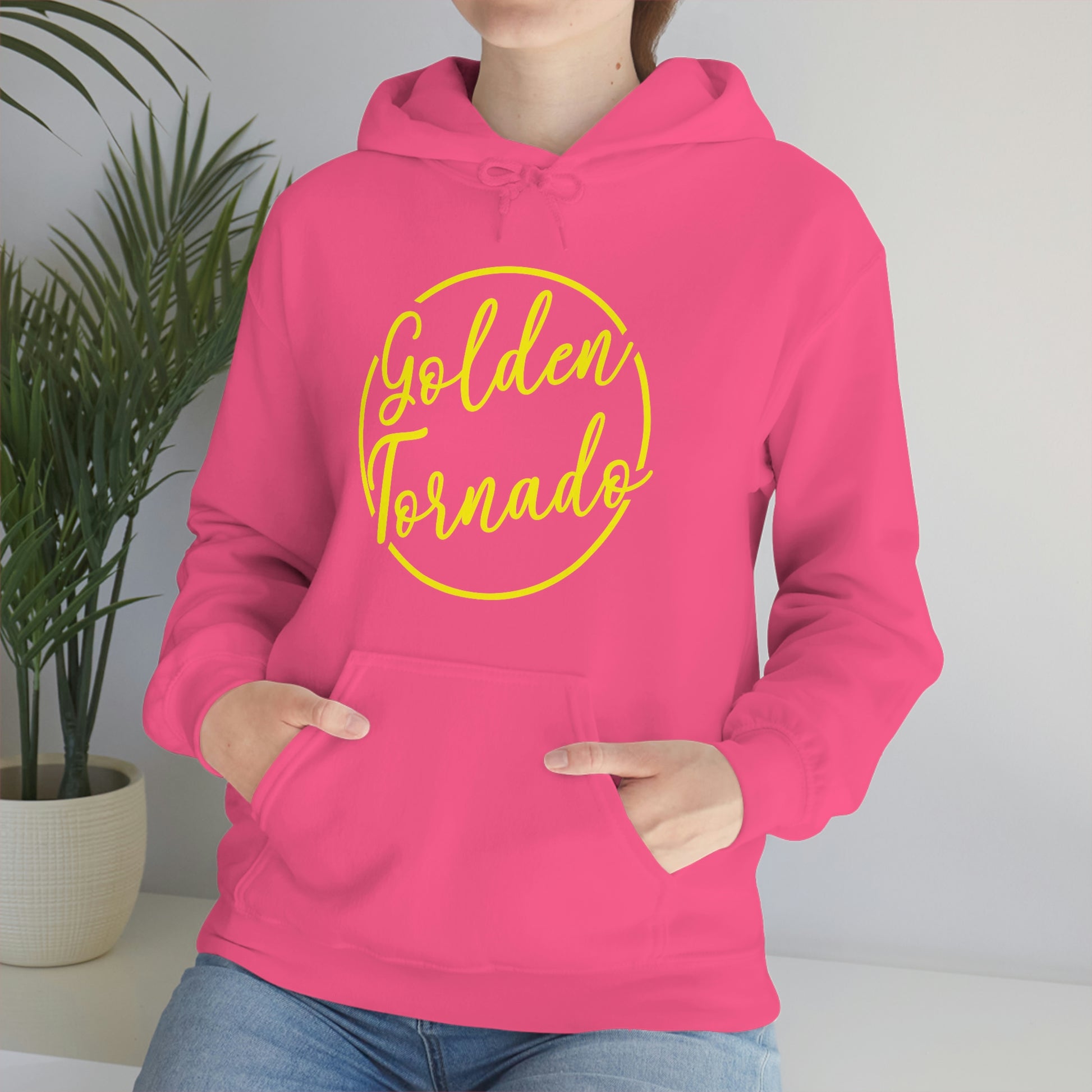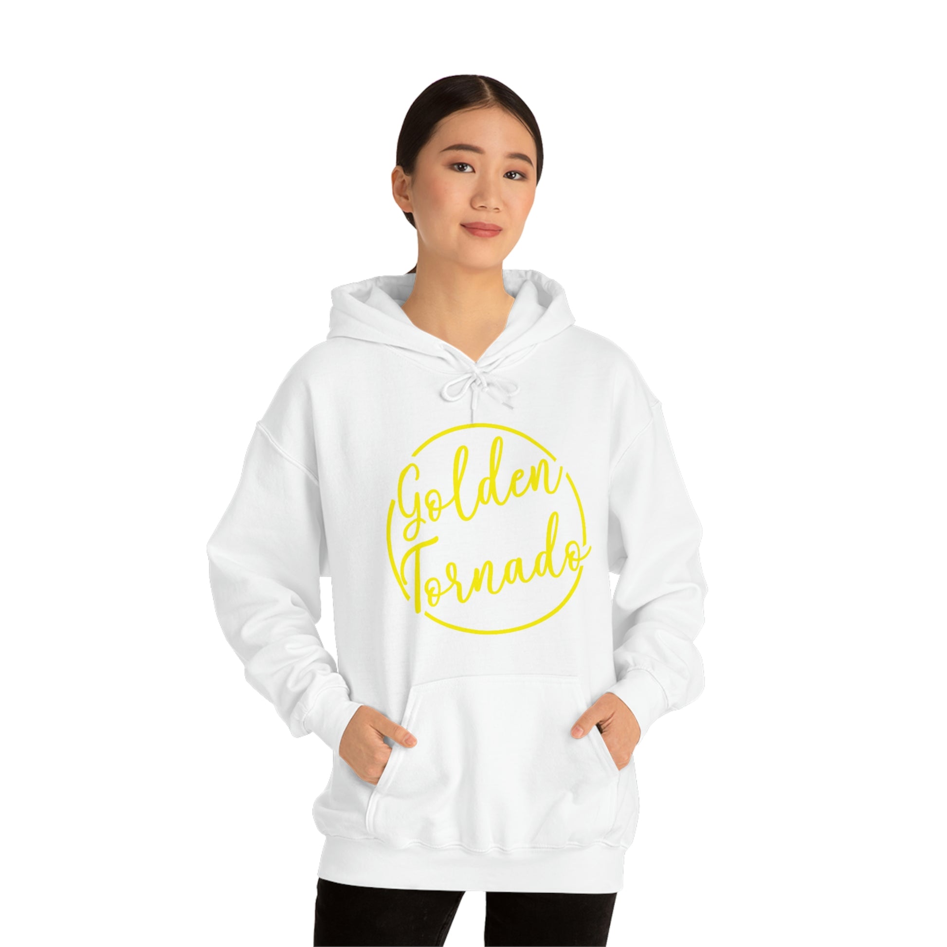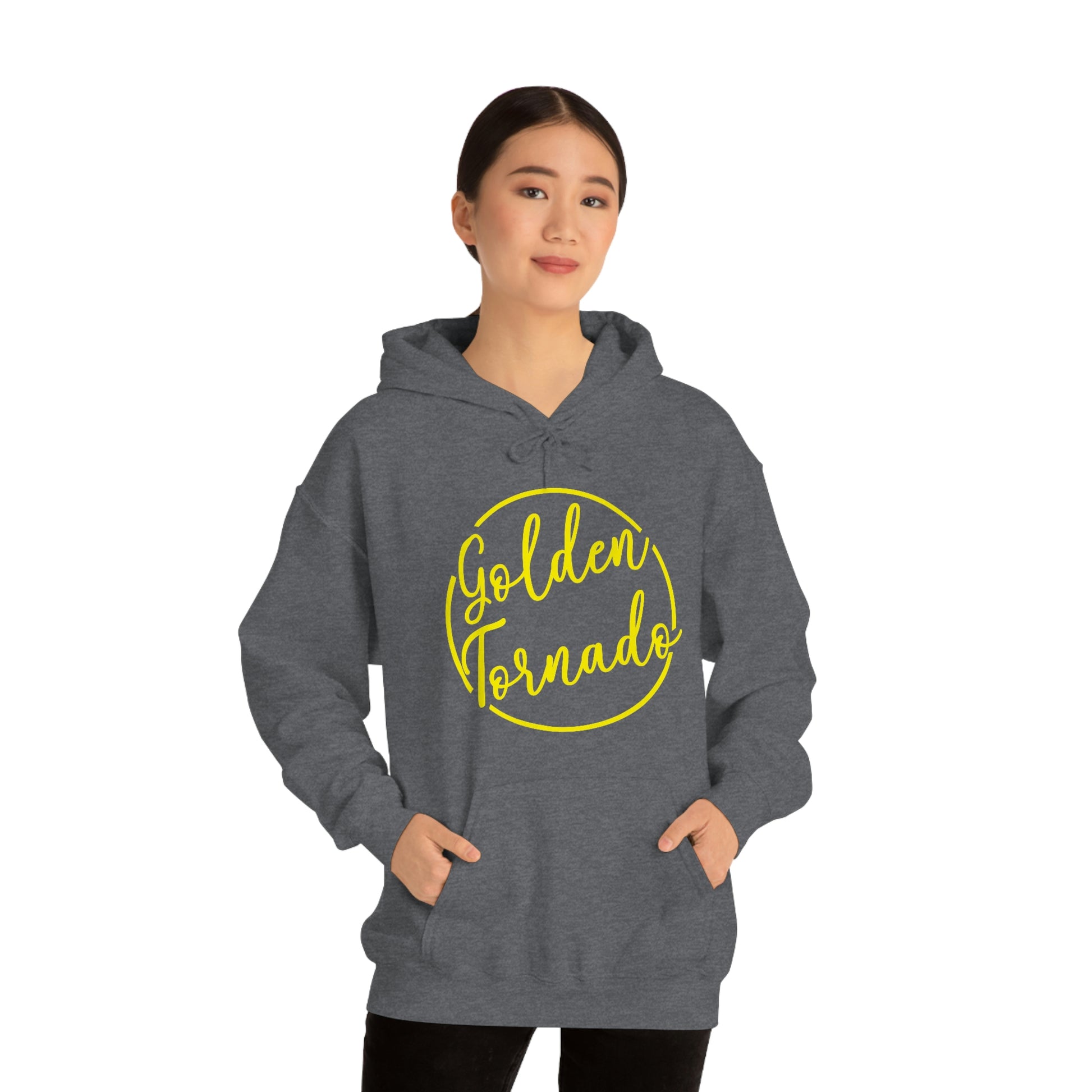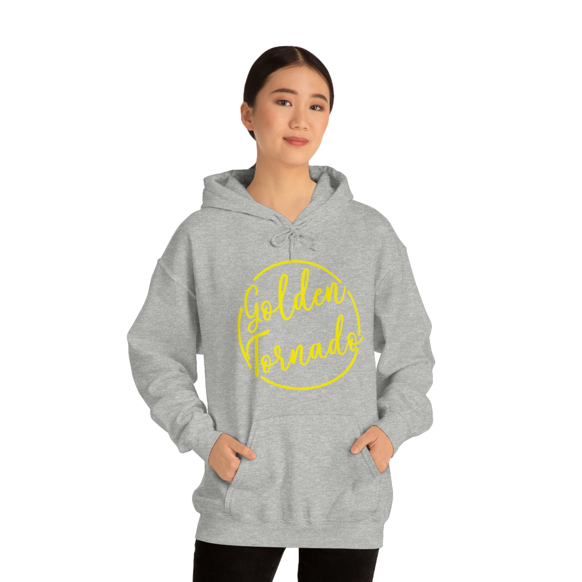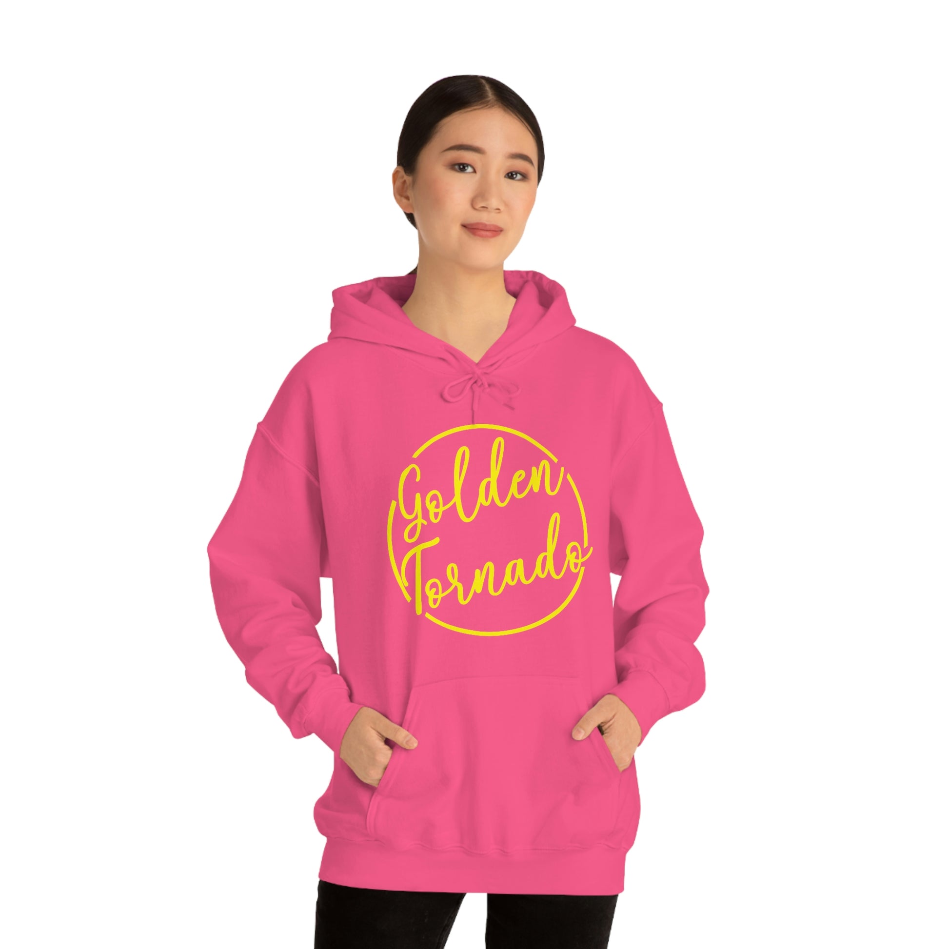 This unisex heavy blend hooded sweatshirt is relaxation itself. Made with a thick blend of cotton and polyester, it feels plush, soft and warm, a perfect choice for any cold day. In the front, the spacious kangaroo pocket adds daily practicality while the hood's drawstring is the same color as the base sweater for extra style points.