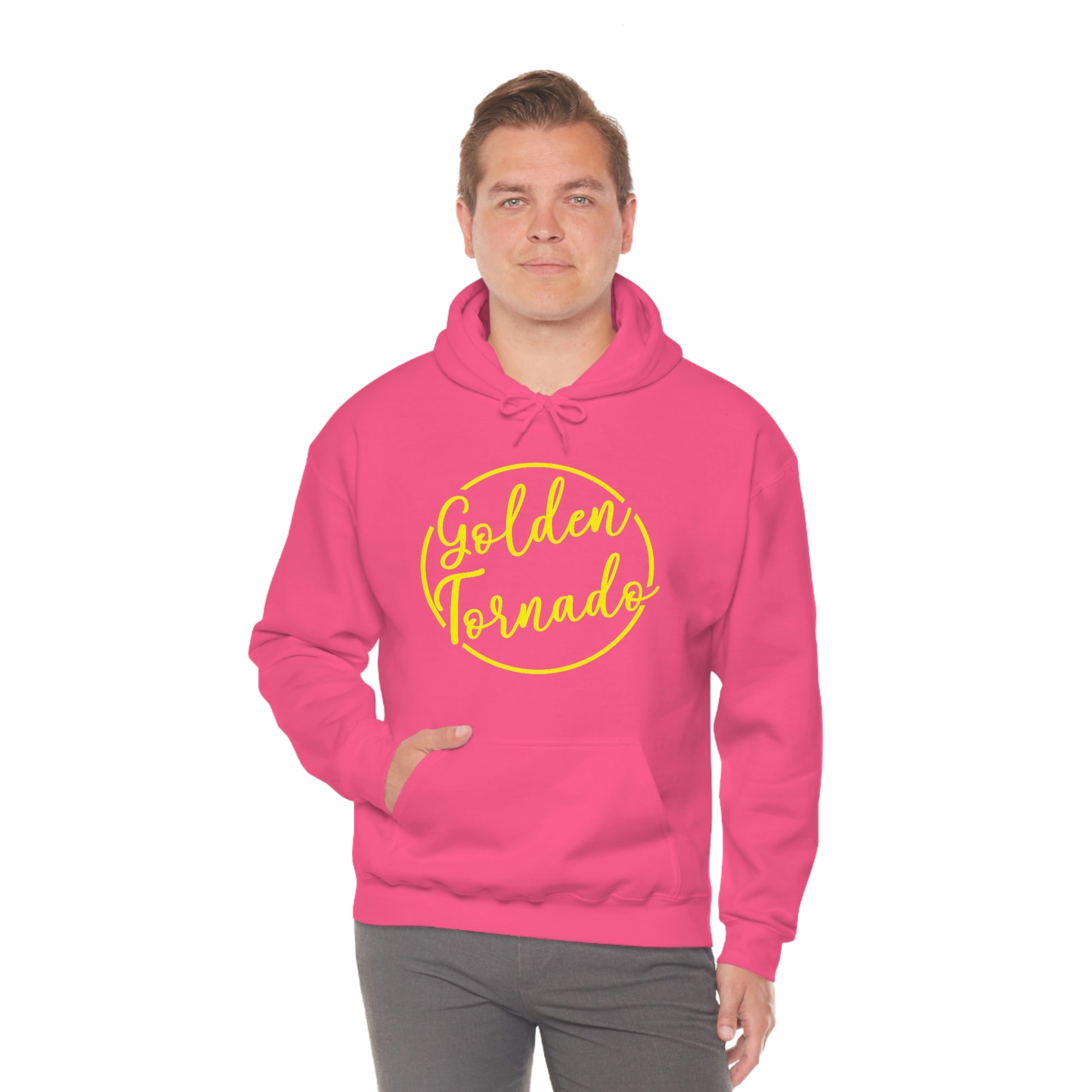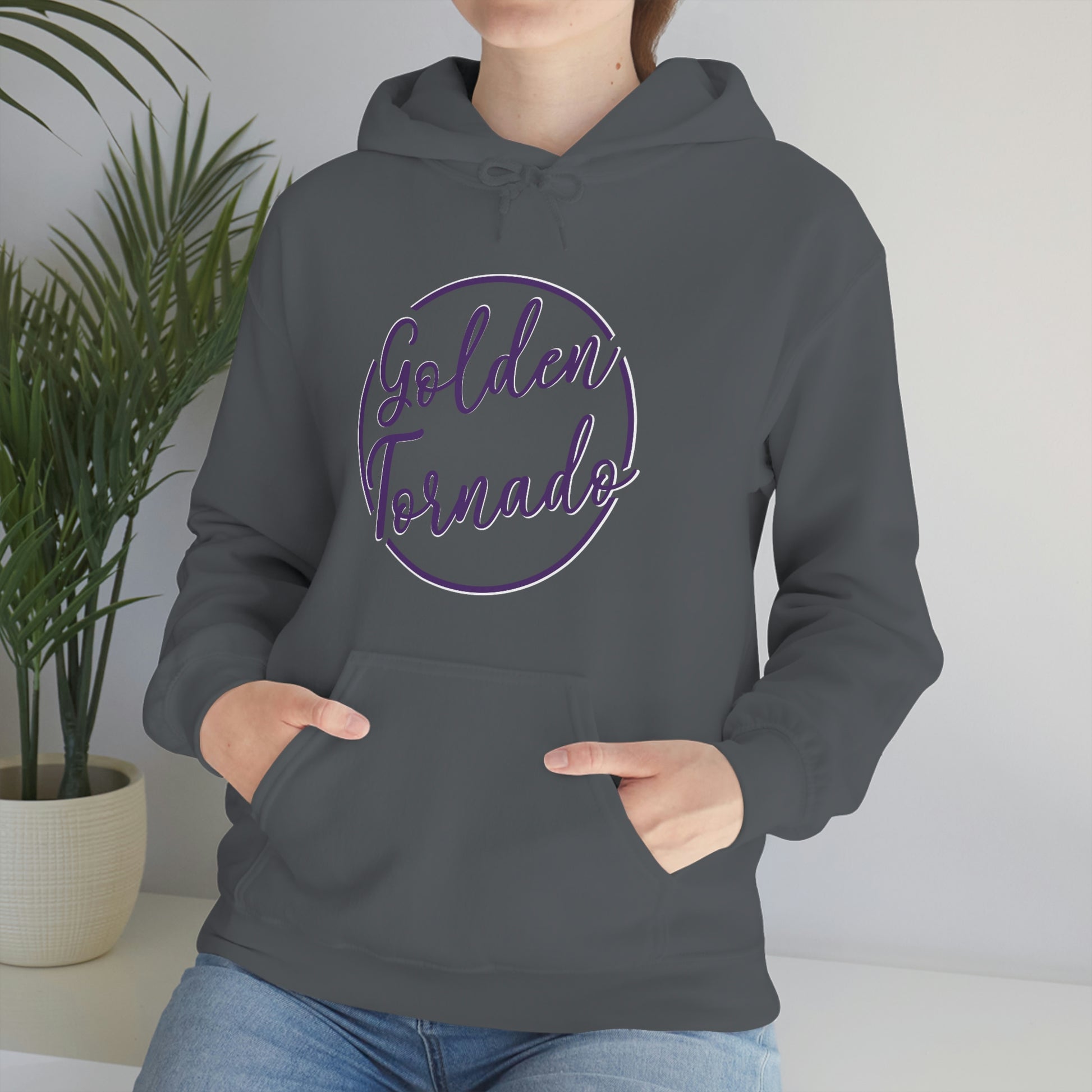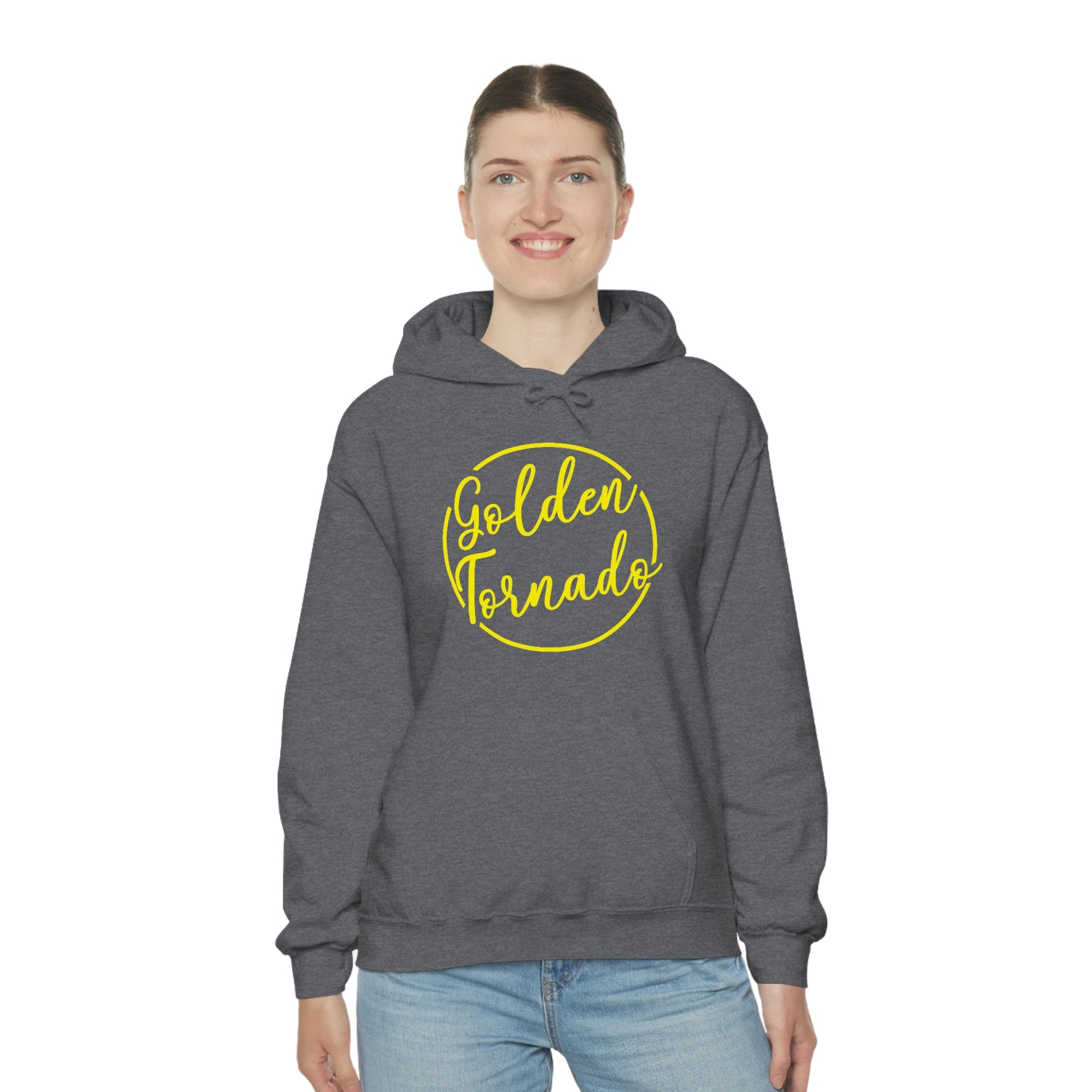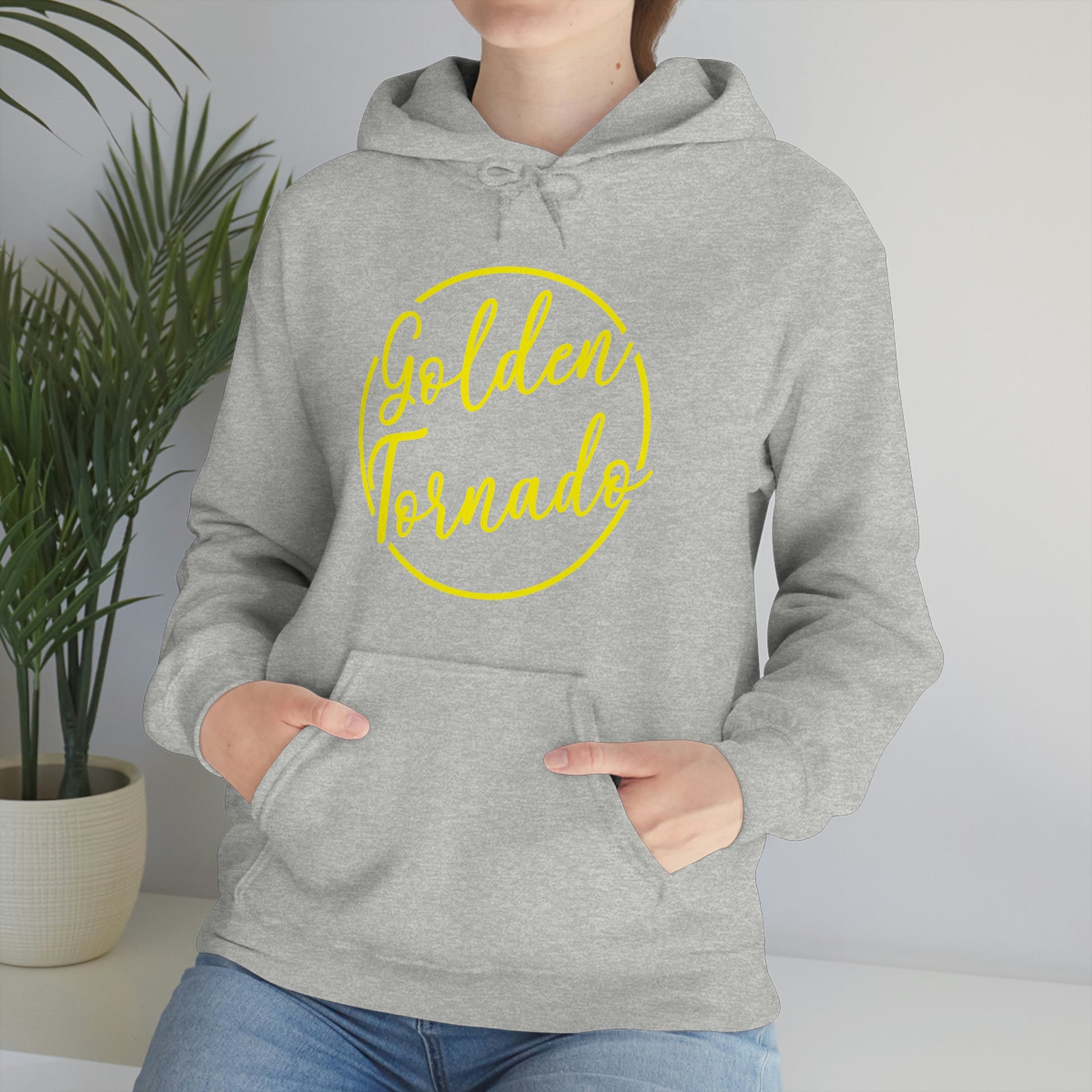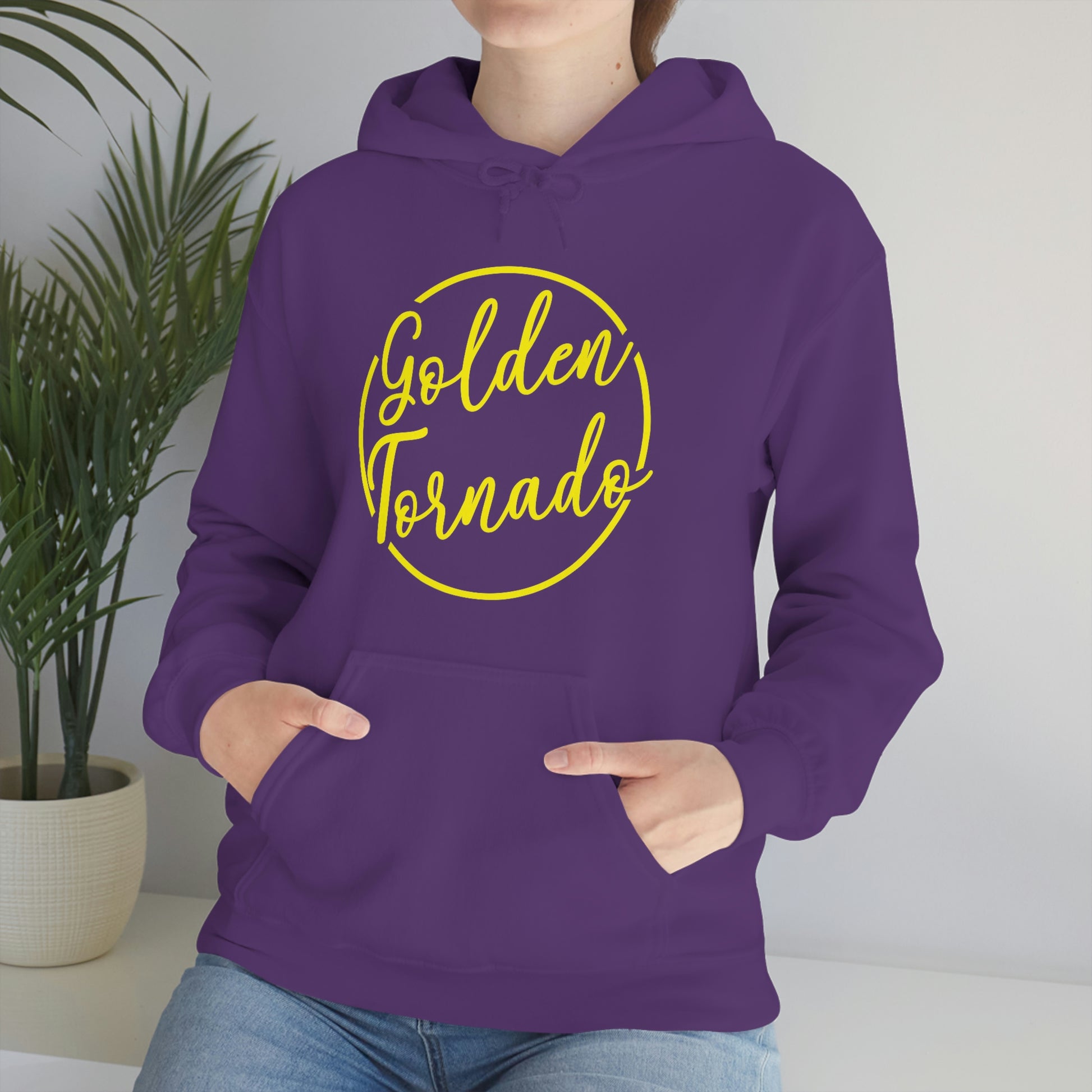 This unisex heavy blend hooded sweatshirt is relaxation itself. Made with a thick blend of cotton and polyester, it feels plush, soft and warm, a perfect choice for any cold day. In the front, the spacious kangaroo pocket adds daily practicality while the hood's drawstring is the same color as the base sweater for extra style points.